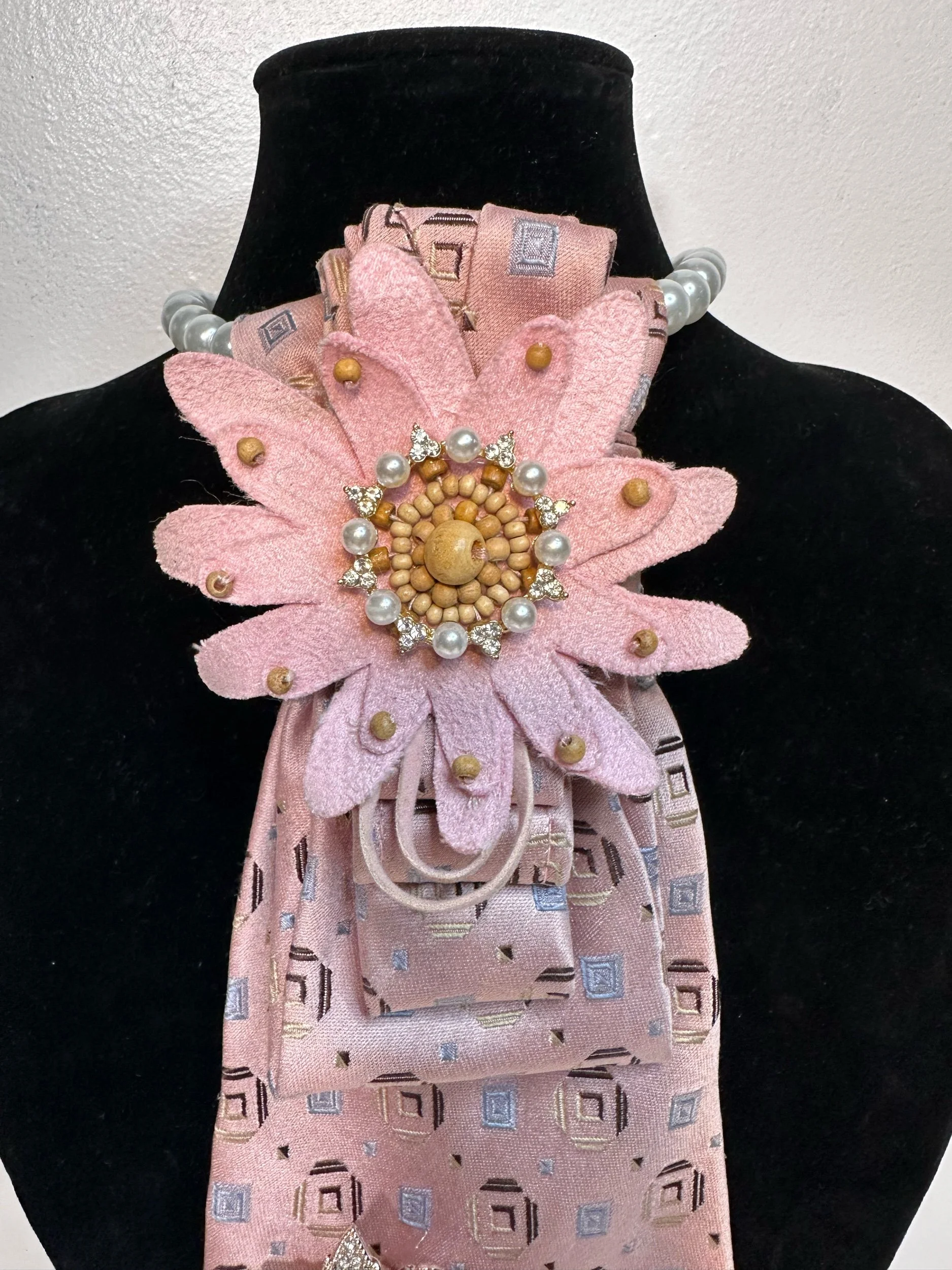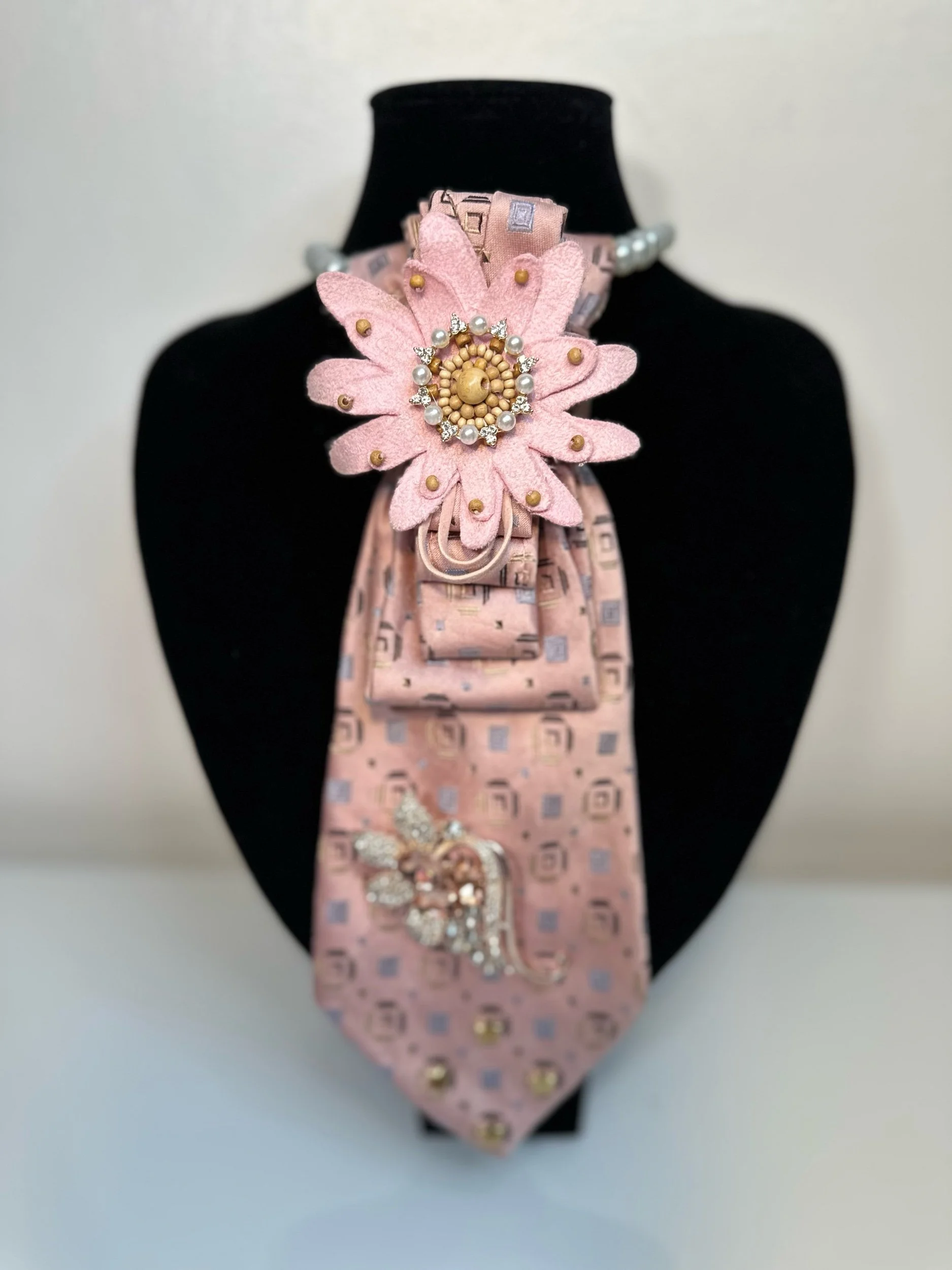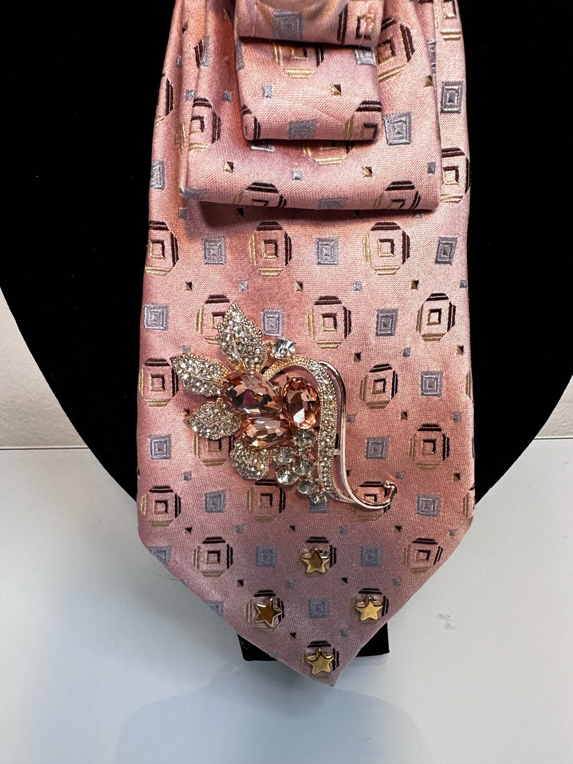 Welcome to our Cravette Collection - a men’s tie, creatively hand-folded & knotted into a women’s statement neckpiece, finished with a stunning jeweled brooch.